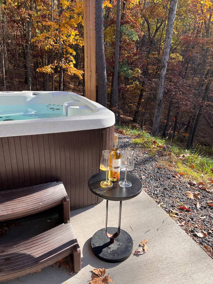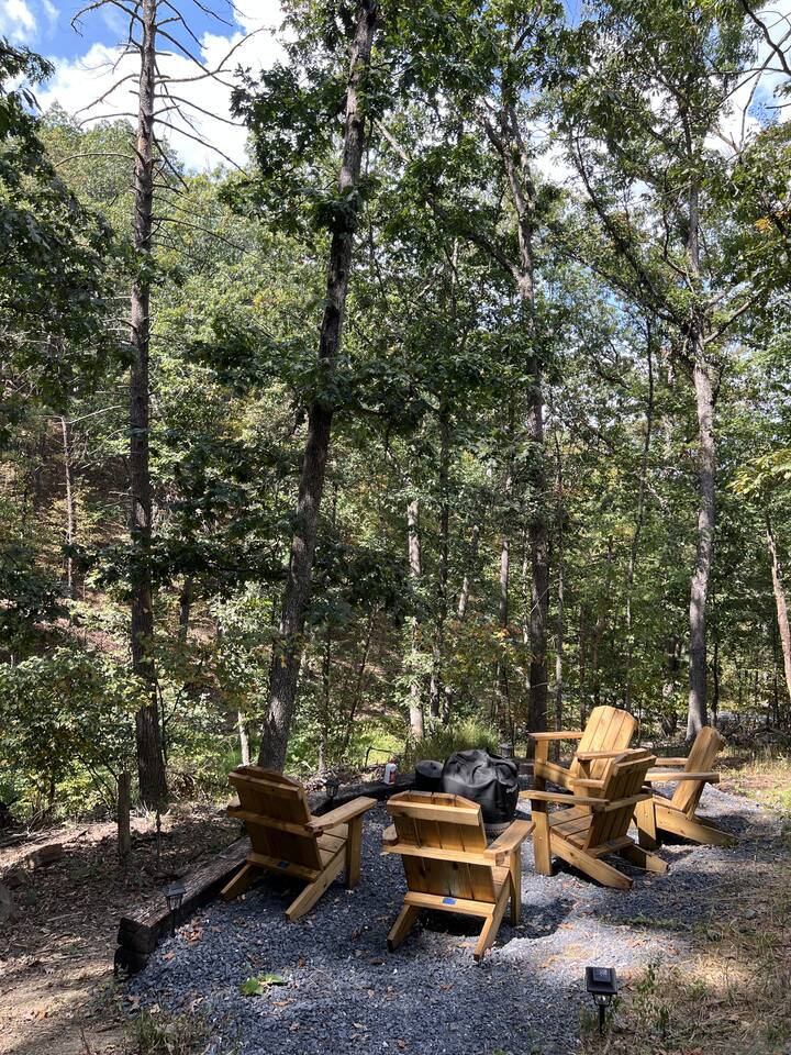 - Open-concept living area with cozy furnishings and a modern vapor fireplace. - Large windows framing breathtaking wooded views. - Accommodates up to 7 guests with comfortable sleeping arrangements. Sleeping Arrangements: - Two bedrooms upstairs: - One bedroom with a queen bed. - One bedroom with two twin beds. - Master bedroom located in the basement: - Queen bed with desk and club chair. - Pull-out sofa in the basement living area provides additional sleeping space for 1 guest. *For those who prefer a supportive sleep, our beds feature firm mattresses to ensure a restful night’s sleep. If you love a plush feel, you may want to bring an extra mattress topper for added softness! The Kitchen: - Fully equipped kitchen with modern appliances, including a Nespresso machine for your morning coffee fix. - Ample counter space and all necessary cookware and utensils provided. - Dining table for enjoying meals together. Master Spa Bathroom: - Luxurious spa bathroom with a soaking tub and separate rain shower. - Elegant fixtures and serene ambiance for ultimate relaxation. - Two plush robes provided in the master bedroom for total relaxation. Entertainment Area: - Basement equipped with a pool table and dart board for competitive fun. - Karaoke machine for entertaining evenings with friends and family. Outdoor Features: - Fire pit with modern Solo Stove and Adirondack chairs. - 7-person hot tub - Balcony with comfortable patio furniture to enjoy woodsy views and fresh mountain air. - Property exudes tree house vibes with its secluded and natural surroundings. - Parking suitable for three vehicles; 4x4 recommended for ease of access in mountain terrain. Additional Amenities: - Picnic basket provided for enjoying meals outdoors. - Beach towels available for use during lake activities. - Spacious deck overlooking the tree canopies for morning coffee or sunset views. - Opportunities for birdwatching and wildlife observation. What to Expect Living in the Woods: - Embrace the tranquility of nature with occasional insects and wildlife encounters. - Internet speed may be slower due to remote location. - Limited or no cell phone reception; plan for a digital detox and enjoy true relaxation. Nearby Attractions: - Skiing and snowboarding in the winter less than 3 miles from the house. - Hiking, mountain biking, and nature walks in the summer. - Lake Laura within a mile from the property! - Charming nearby towns with local shops, restaurants, and cultural attractions. Your Host: - Dedicated to ensuring your stay is comfortable and memorable. - Available to provide local recommendations and assistance. Book Your Stay: - Perfect for families, couples, or groups of friends seeking a memorable getaway. - Rejuvenate and unwind in the tranquility of our mountain retreat, just minutes from the lake. - Reserve your dates today and start planning your adventure!